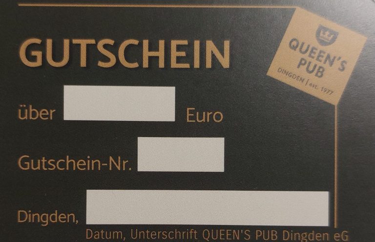 Geschenkidee: Die QUEEN'S PUB - Gutscheine sind da!